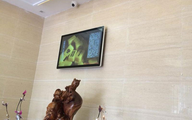二、電梯處投放的是一臺32寸的安卓網絡廣告機,整機厚度是4.8公分,外觀方面與42寸的一樣,都是五金拉絲邊框,此次所做的是類似于嵌入式,是根據大唐宮結構設計預留尺寸所選定的液晶廣告機,而事實也證明,CTVS在尺寸方面的把握控制是值得大唐宮信任的,功能介紹如下: